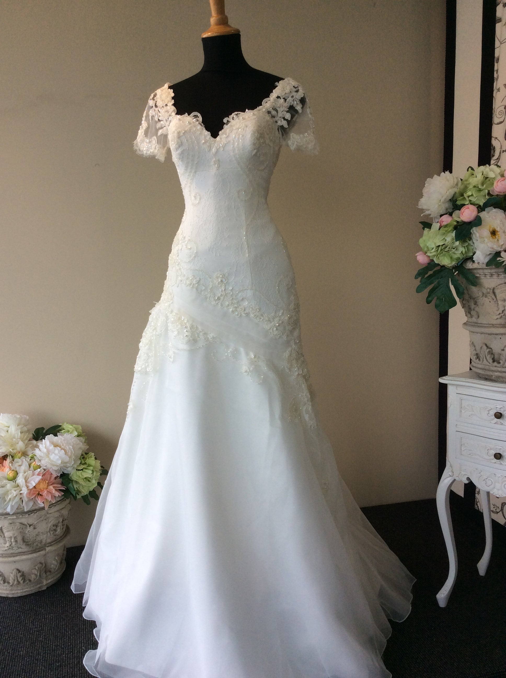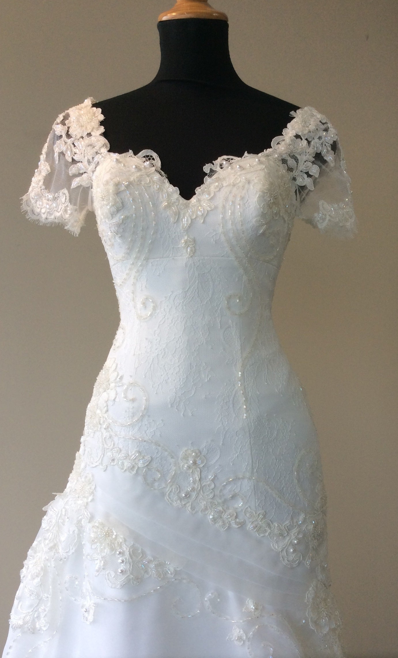 All bridal gowns require professional alteration for a perfect fit (hemming, sizing, bustling, etc.). Alteration costs are not included in the gown purchase price.